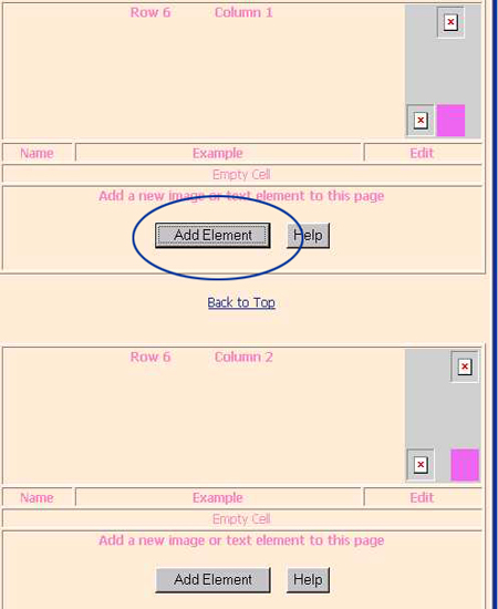 You will be redirected to the cell that you have selected to modify. You can verify that this is a new element because the cell states Empty Cell. Click on the "Add Element" link underneath the empty cell.