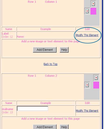 You will then be taken to another section of the modify form screen. Look for the text or image you want to customize and click on the "Modify This Element" link next to it.