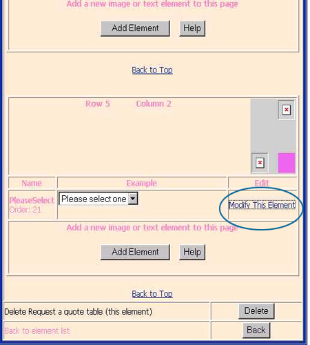 Adding A FormTo add a form to this table from the Page Administration screen, scroll to bottom of the page until you locate the Add Element link at the bottom of the page